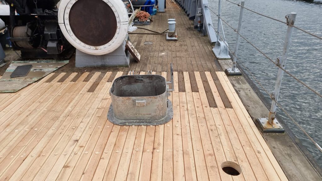 ‘Blok timmeratelier’ uit Dirksland heeft met behulp van enkele toegewijde bemanningsleden de renovatie van het houten dek afgerond. Komende week wordt het dekmeubilair teruggeplaatst en nu de dieselreparatie ook achter de rug is wordt er begin december een proefvaart gemaakt. De grootste klus zit er op maar de volgende dient zich al aan. Het stuurhuis wordt rondom voorzien van nieuw hout.